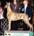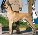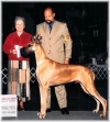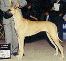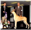 Sire Am BISS Can BIS BISS Am/Can Ch Striders KC Khan V Drogheda OFA Exc Ec fn AKC: WP58531403 CAN: 1055525 DOB: 06/21/1994 DOD: 09/01/2002 |