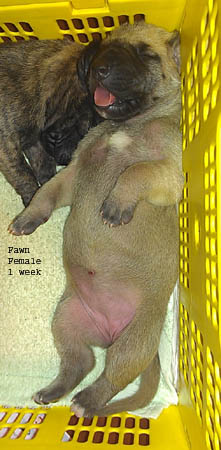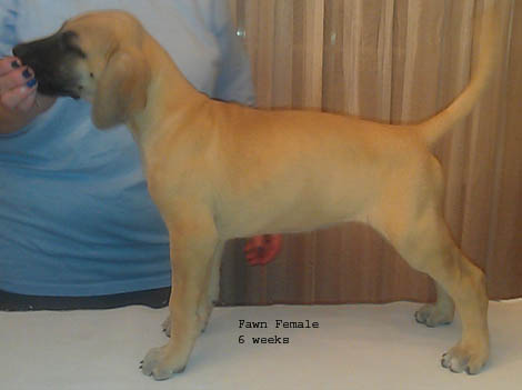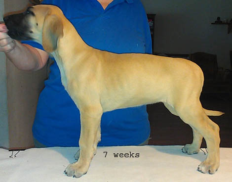 Sire: Biss GCh Ch Von Charms Return Of The King CGC br Ofa Good Hclr Ec Tn Chic 64344X Dam: Am GCh Striders Ruby River V Drogheda fn OFA Good Ec Tn Hclr Chic 94031
