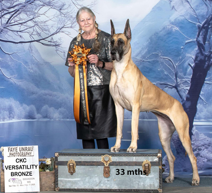 Sire: GChB Droghedas Sun Glazed Denali AOM OFA Good Hclr Ec TgAAneg fn X
