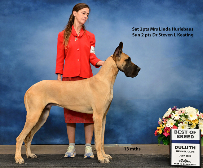 Sire: GChB Droghedas Sun Glazed Denali AOM OFA Good Hclr Ec TgAAneg fn X
